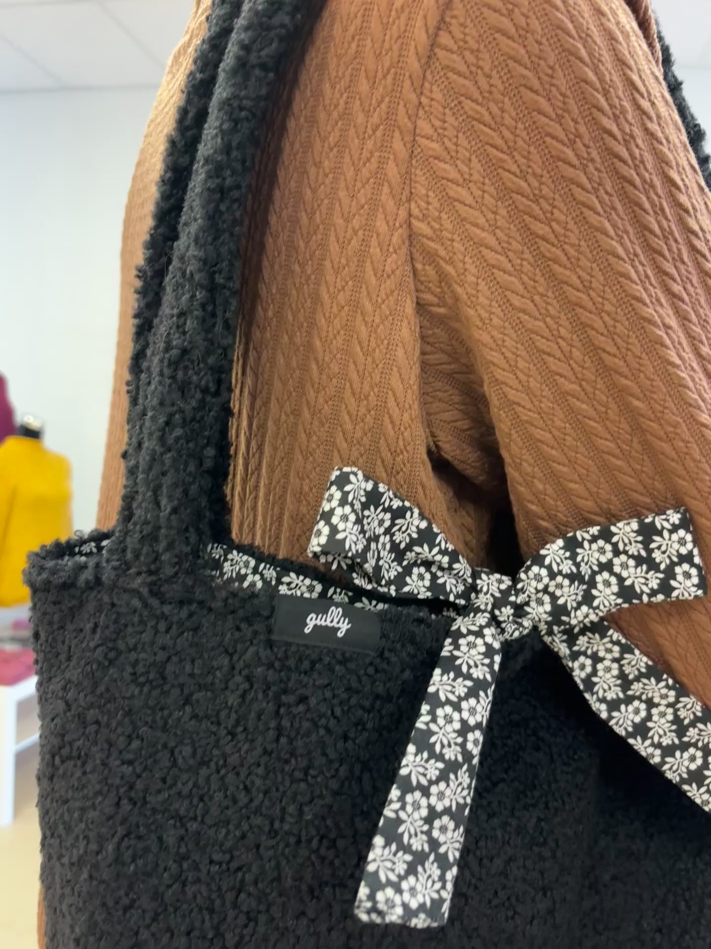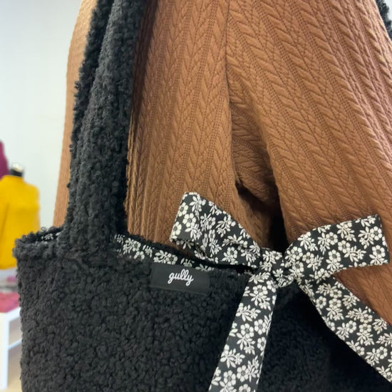 Versatile tote bag made with Sherpa fabric, lined and features an inner pocket